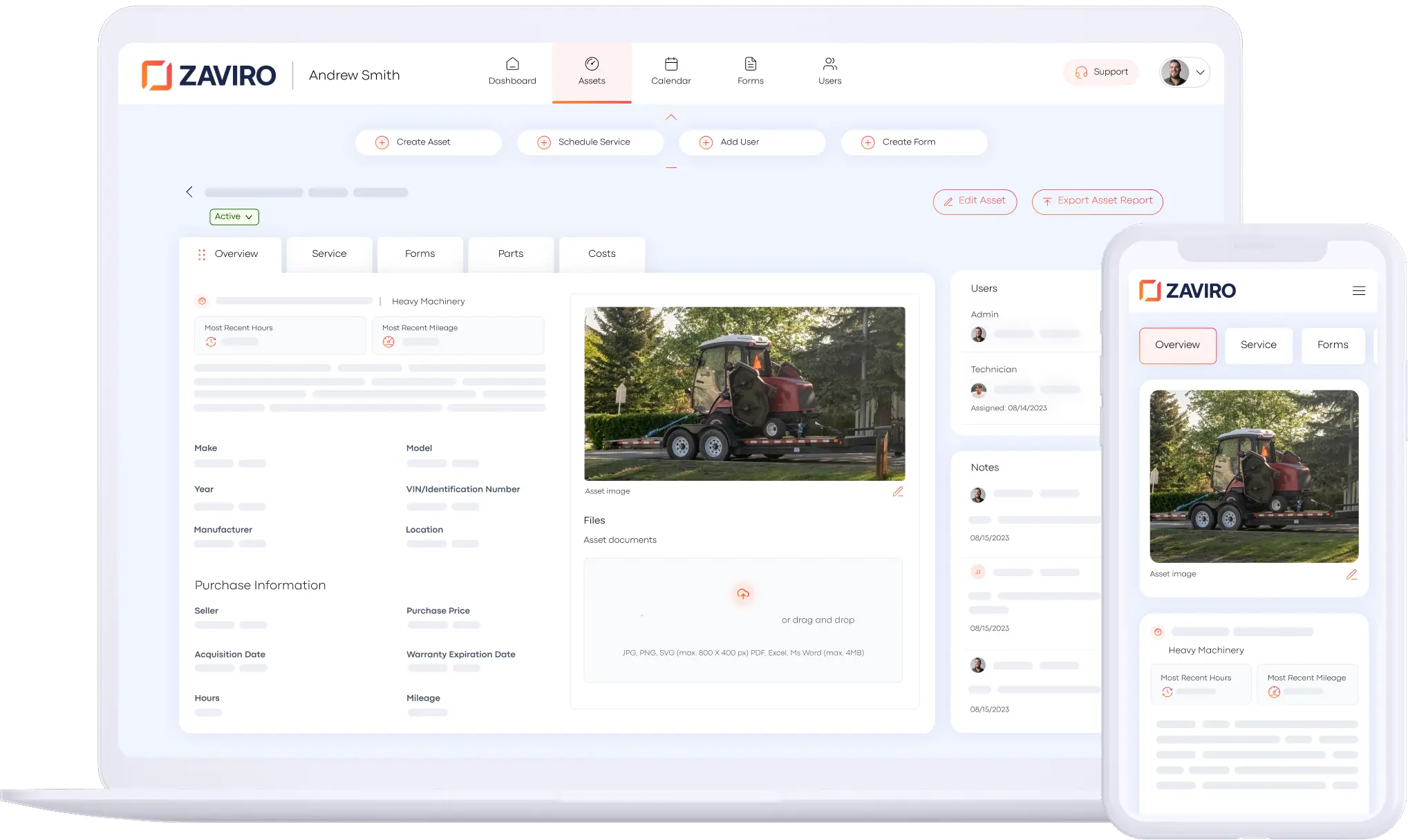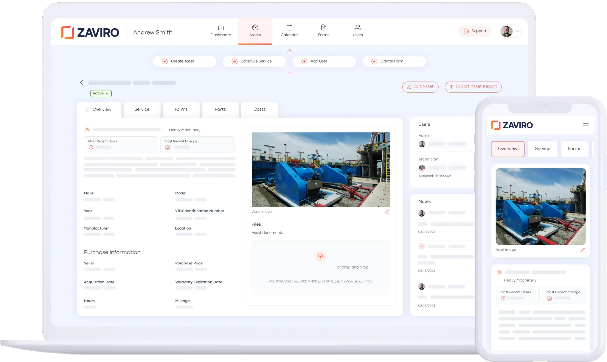 Zaviro empowers businesses with the tools to maximize efficiency across all asset management operations. Key features include: